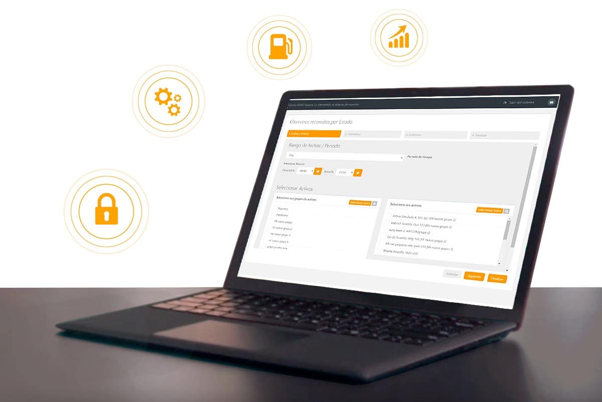 El operador podrá consultar reportes históricos de distancias recorridas, paradas, variaciones de Velocidad, combustible, estado de sensores, entre otros.